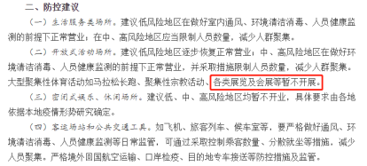2020年,一场疫情给全球会展行业按下了“暂停键”。虽然全国疫情防控形势持续向好,但国际防控形势变得尤为严峻复杂。根据国务院于2020年4月6日下发的《关于进一步做好重点场所重点单位重点人群新冠肺炎疫情防控相关工作的通知》。《通知》指出大型聚集性体育活动如马拉松长跑、聚集性宗教活动、各类展览及会展等暂不开展。