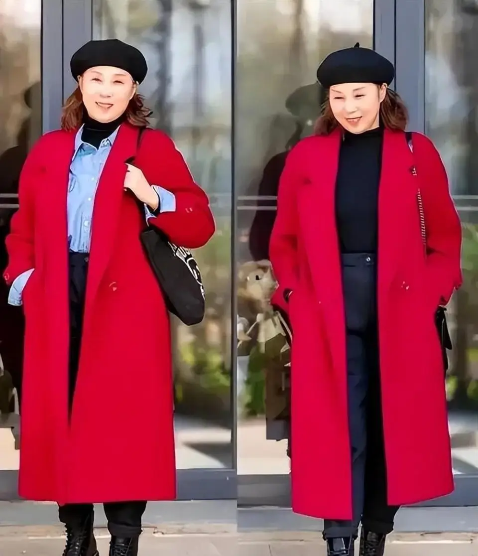 不管你穿的是红色大衣还是别的色彩大衣外套,或者是别的衣服单品,一定要注意衣服的材质和版型,尽量做到穿松,不穿紧衣服,颜色不花哨,这样更容易降低出错率。