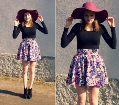 印花上衣搭配粉色半身裙