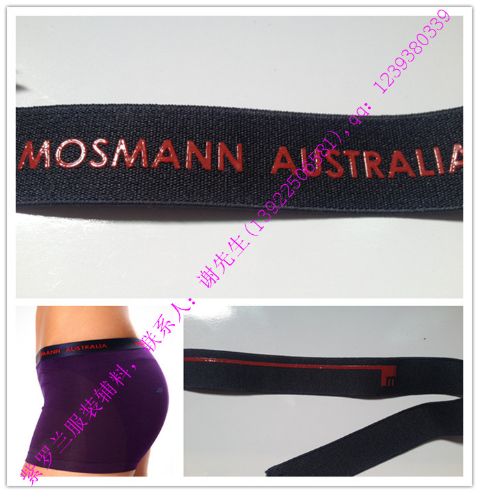 澳大利亚内裤品牌MOSMANN在紫罗兰定制内裤用的硅胶丝印松紧带,松紧带立体丝印加工
