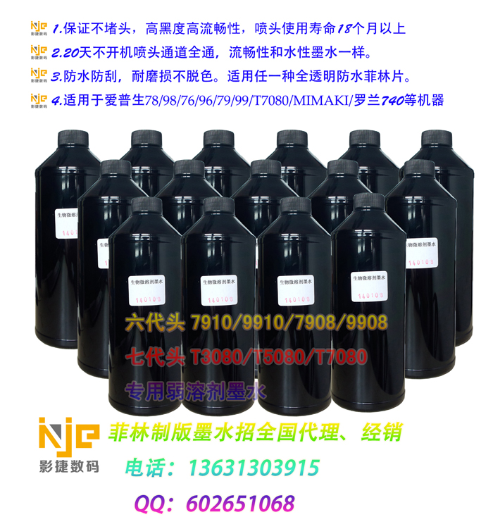 2.打印机墨水,爱普生打印机墨水,热转印墨水,制版菲林墨水,弱溶剂墨水,染料墨水,颜料墨水,油性墨水,广告喷绘墨水,免涂层墨水,纺织直喷墨水,UV墨水,纯棉印花墨水,纯棉热转印墨水,医疗片专用墨水等等各种墨水.