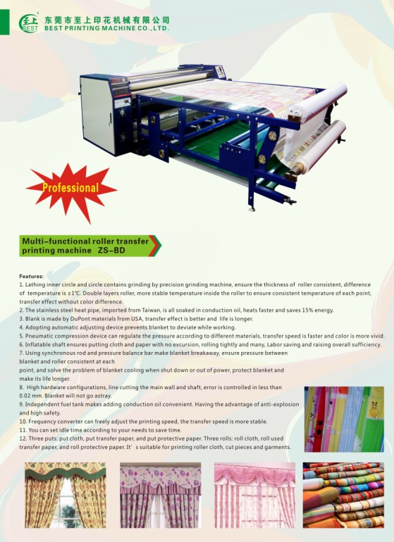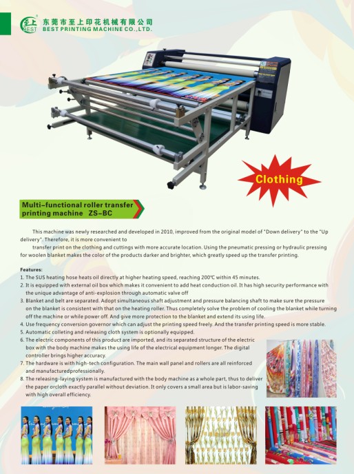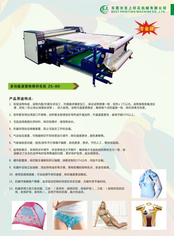 (三)新机使用时: 应先采用小块面料和色纸测试,在转印过程中当转印纸或面料太薄时,应采用垫纸垫住被承印物后再进行转印,采用垫纸转印操作方法可以防止颜料在加热过程中将颜料转印到毛毯表面,影响毛毯使用寿命及转印效果。