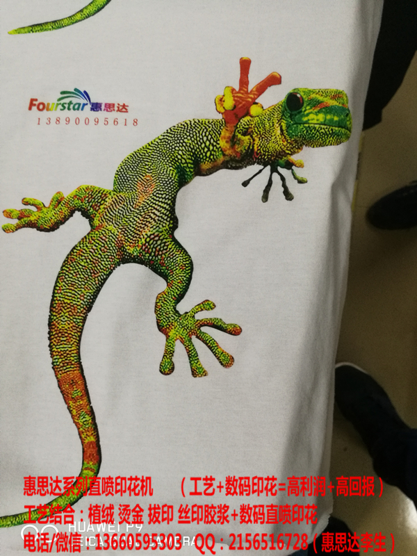 高速度彩印※T恤等服装上面打印1张A4大小图案只需20秒,满版打印8分钟,真正的批量生产;色彩艳丽,色牢度好※采用进口纺织专用墨水;不但色彩艳丽,而且色牢度好,打印后的服装不退色,耐水洗;健康环保※墨水使用的是水性环保墨水,印花后的衣服穿起来柔软舒适,对人体无害,并且生产过程中不会产生污染,墨水